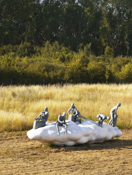 Questo luogo aperto mette in relazione la dimensione operativa e quella naturale del sito, diventando punto di passaggio, incontro e sosta. A segnare simbolicamente lo spazio è la scultura Meteoros, realizzata da Lucy e Jorge Orta, raffigurante una coppia di nuvole sospese, che richiama il legame tra cielo e terra e invita a riflettere sul tema dell’acqua come risorsa condivisa.